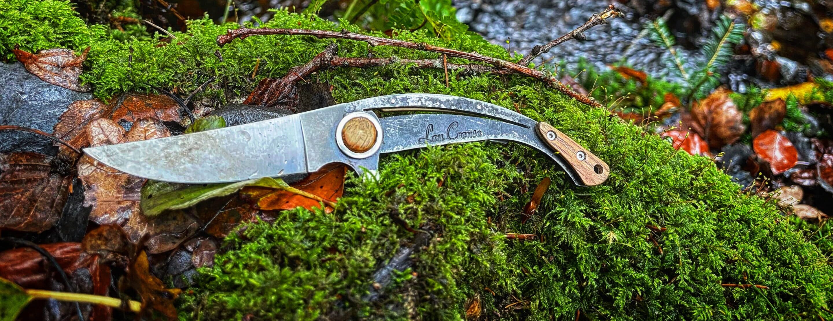 Lame acier carbone, manche thermolaque noir, couleur acacia.